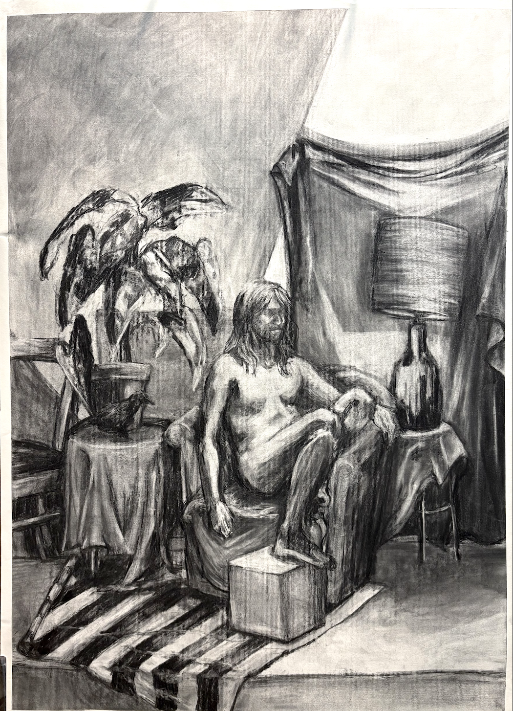 Uneasy Expectation. 2025, charcoal on paper, 40 x 60".